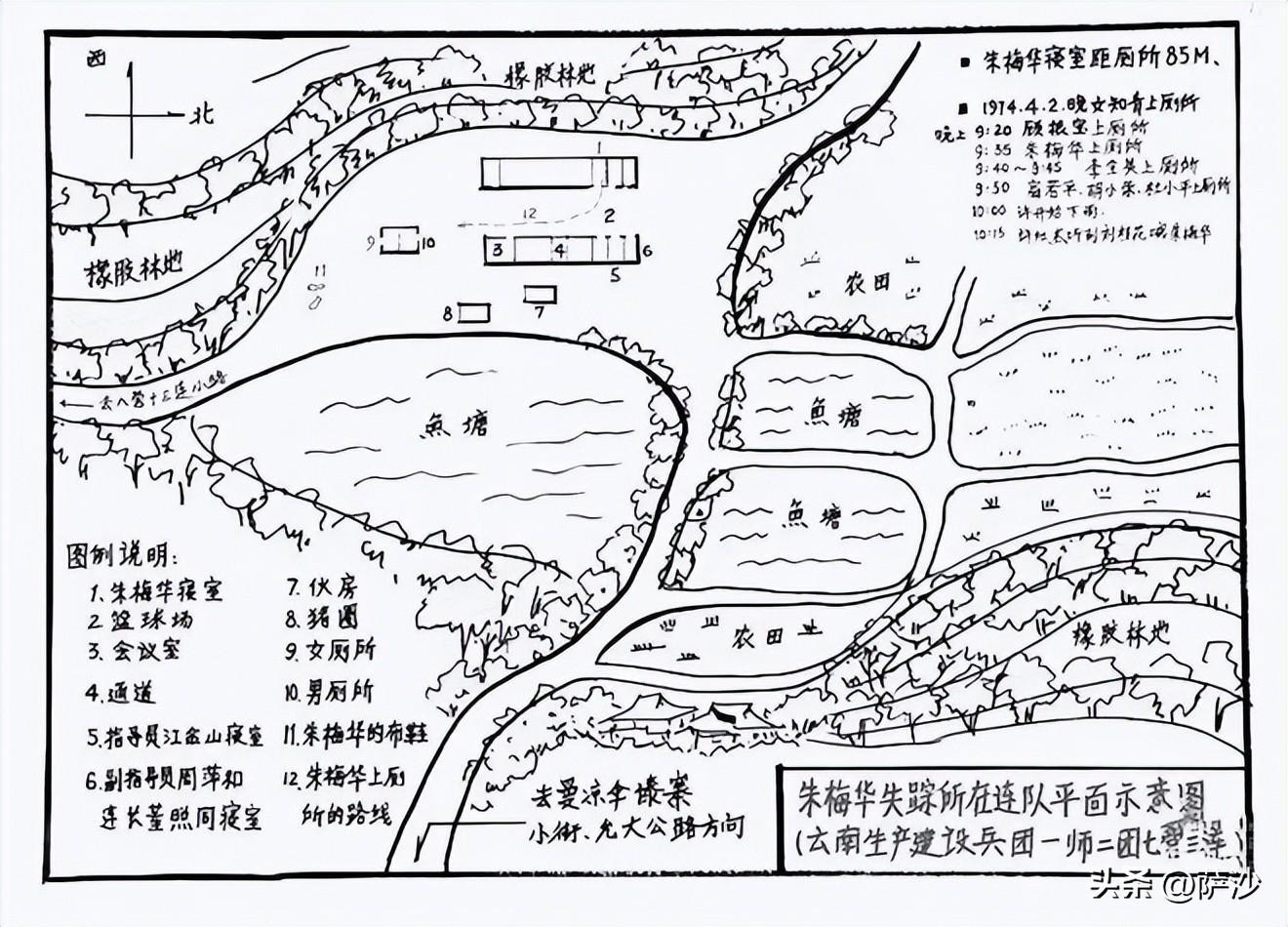 不過,根據知青們回憶,朱梅華大概是9點30分去上廁所。而在9點40分、9點50分先後有兩撥知青去上廁所,一路上並沒有發現什麼異常,沒有聽到呼救或者搏鬥聲音。到10點就開始下雨,沒有人再去廁所。