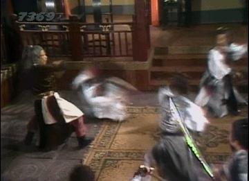 只過半頓飯時間,來敵已只剩下六七名。那使刀的知道不敵,一聲呼哨,雙腿一夾,撥轉馬頭就逃。丘處機左掌前探,已拉住他的馬尾,手上一用勁,身子倏地飛起,還未躍上馬背,一劍已從他後心插進,前胸穿出。丘處機拋下敵屍,勒繮控馬,四下兜截趕殺,只見鐵蹄翻飛,劍光閃爍,驚呼駭叫聲中,一個個屍首倒下,鮮血把白雪皚皚的大地片片染紅。