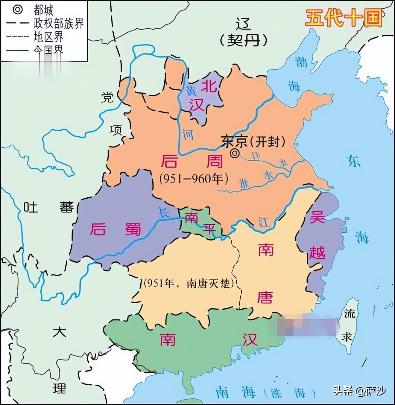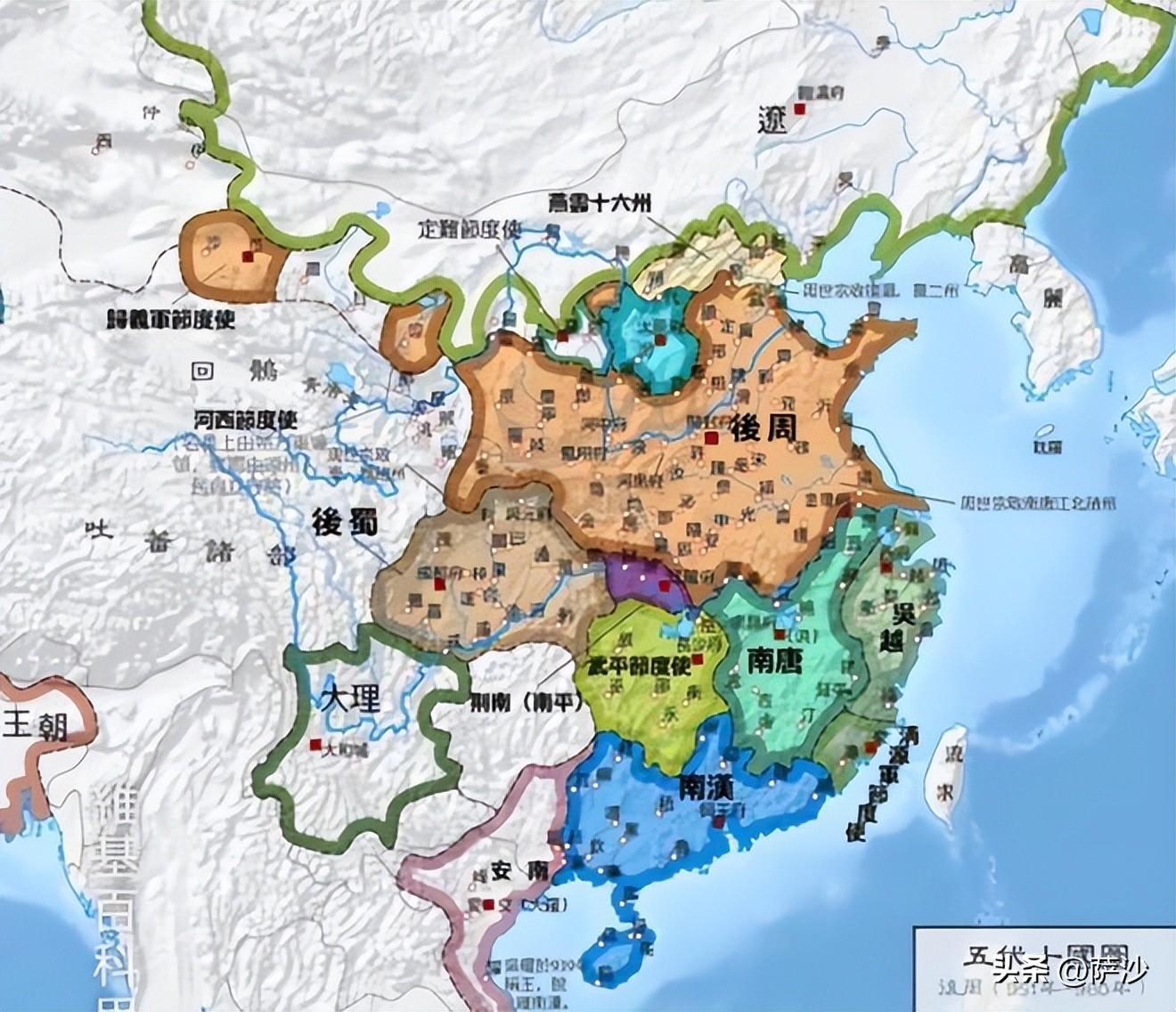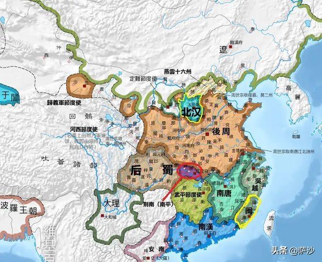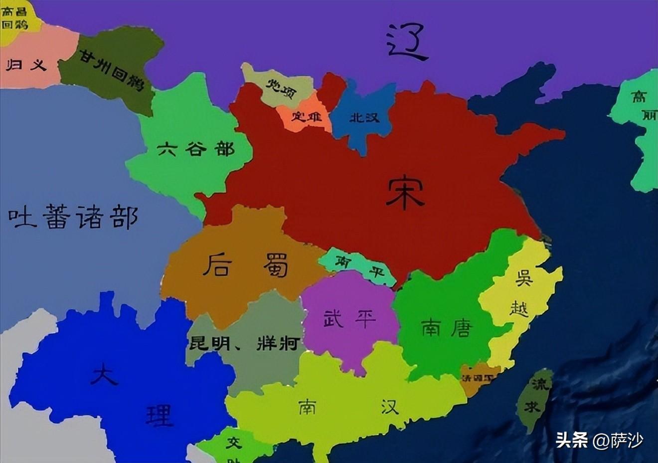 而南方和中原割據政權實力較弱,領土面積較小,主要是武平、後蜀、南漢、南唐、吳越這幾個國家。