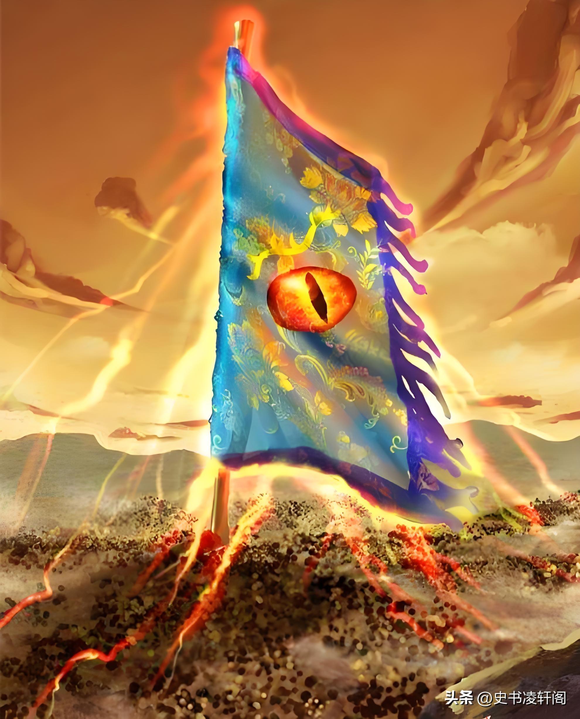 戊己杏黃旗,鴻鈞所得,後傳元始天尊,再借姜尚,以助封神。此旗爲封神中防禦之最,殷郊戰時,姜子牙曾用之,孔宣七色神光亦難收。