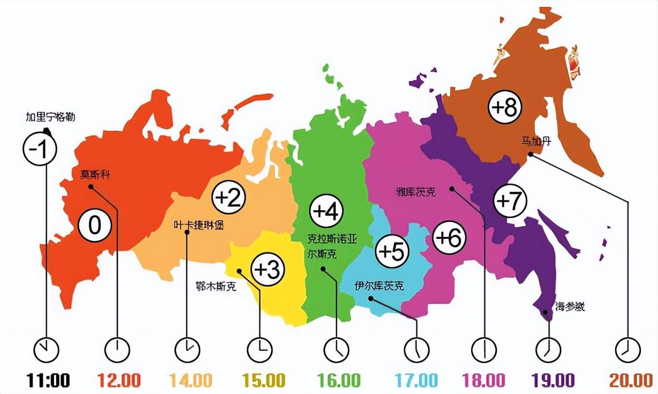 俄羅斯的領土東西方向和南北方向的跨度都很大,是世界上時區最多的國家,有9個時區,在俄羅斯,人們能夠同時體驗到白天和黑夜。