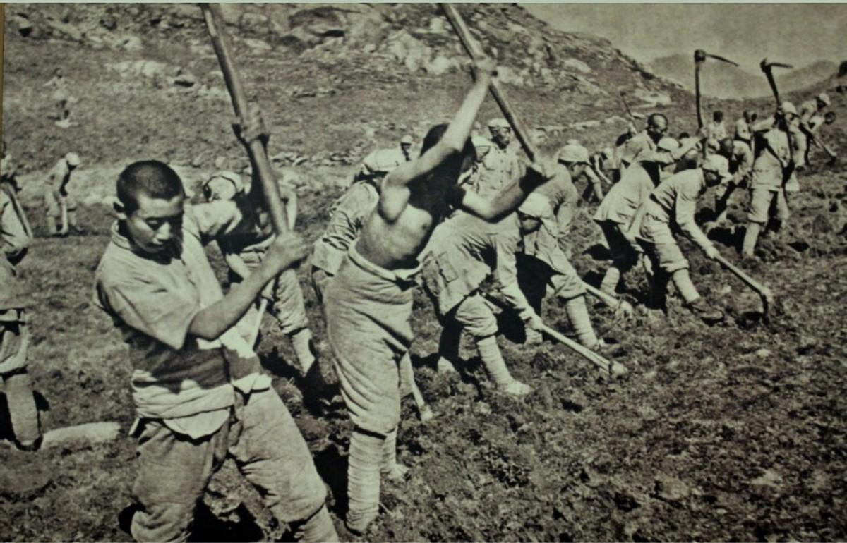 像八路軍總部和129師所在的太行根據地,光是在1942年,八路軍總部直屬部隊開墾就有1.2萬多畝,平均每人2.8畝。