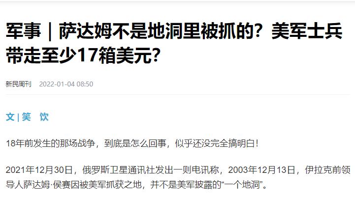 軍事|薩達姆不是地洞裏被抓的?美軍士兵帶走至少17箱美元? 來源:新民週刊 2022-01-04