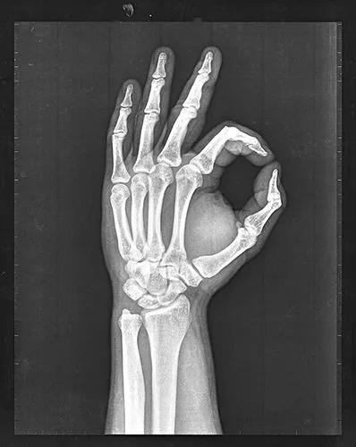 無比的亢奮中,倫琴第一時間讓妻子來到實驗室,並拍下人類的第一張手的骨骼照。這宛如“上帝之手”的直觀骨骼構造,嚇壞了倫琴的妻子。她從此拒絕再進入倫琴的實驗室。