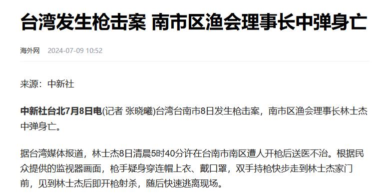 就在7月8日,賴清德的心腹林士傑竟在家門口被槍殺,似乎已經預示着島內即將到來的腥風血雨。