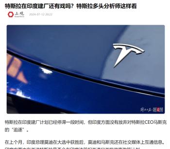 2.特斯拉在印度建廠還有戲嗎?特斯拉多頭分析師這樣看 .上官新聞.2024-07-12