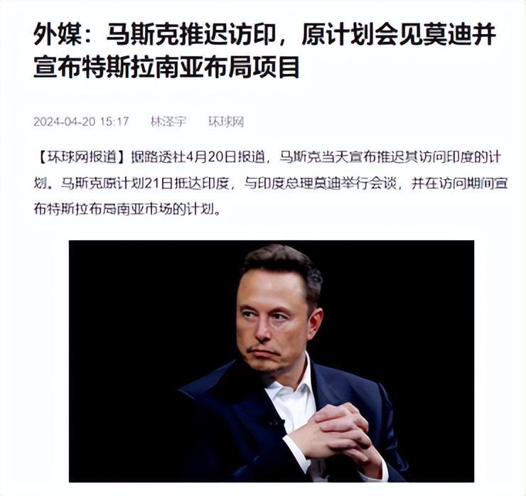 3.外媒:馬斯克推遲訪印,原計劃會見莫迪並宣佈特斯拉南亞佈局項目 .環球網.2024.4.20.