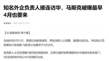 1.知名外企負責人接連訪華,馬斯克被曝最早4月也要來 .觀察者網.2023.4.1.