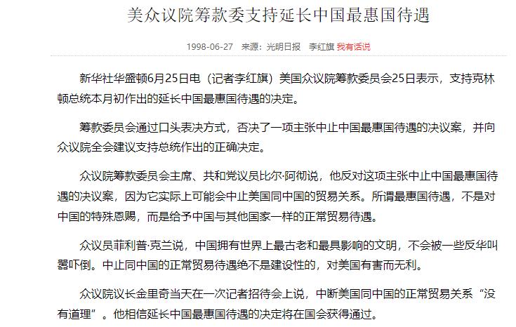當然,在此期間,美國內部也有不少反對的聲音,但煌煌大勢不可擋,美國更多的是支持永久達成中美最惠國協議。
