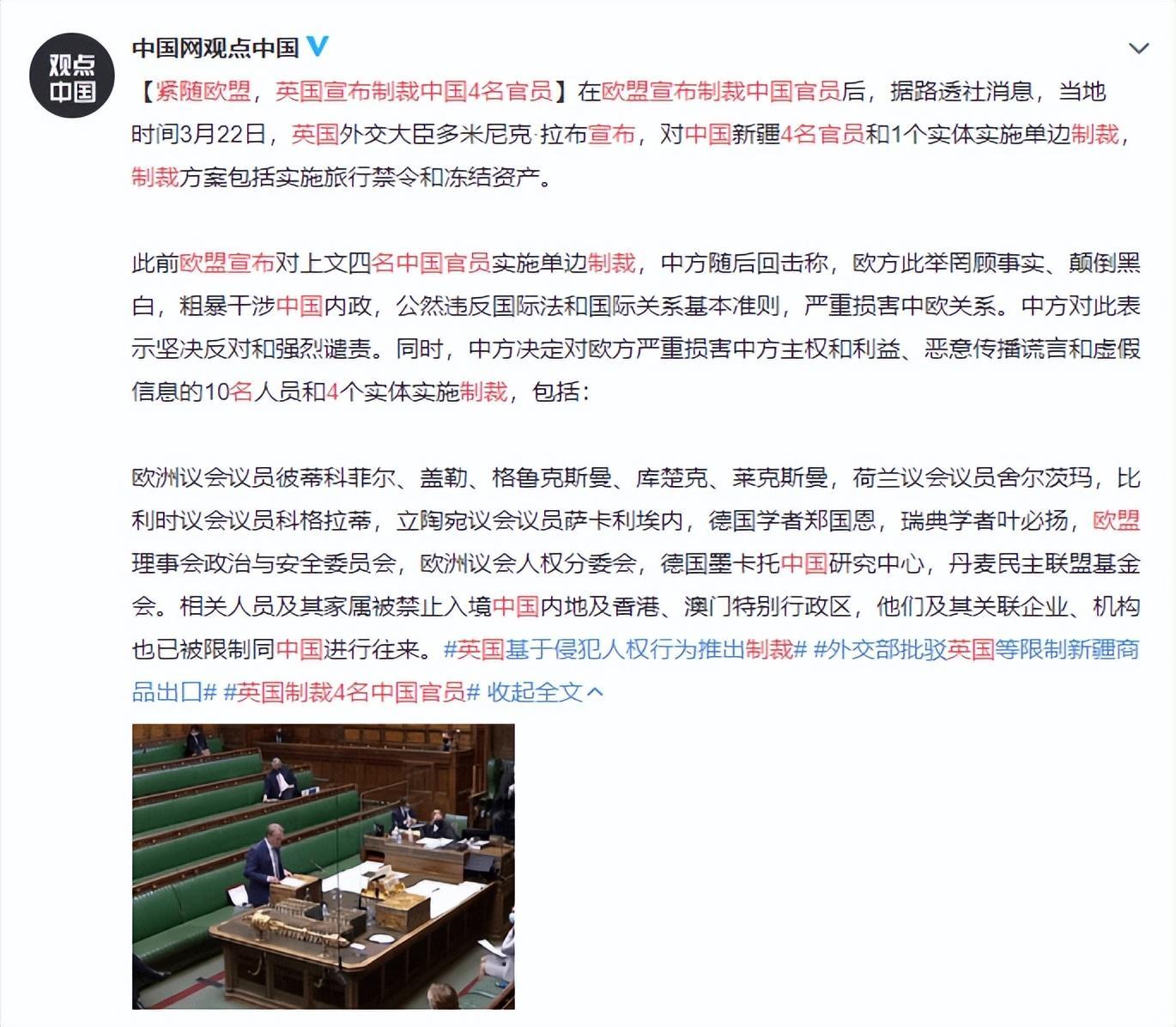 [5] 緊隨歐盟,英國宣佈制裁中國4名官員:實施旅行禁令和凍結資產.千龍網.2021-03-23