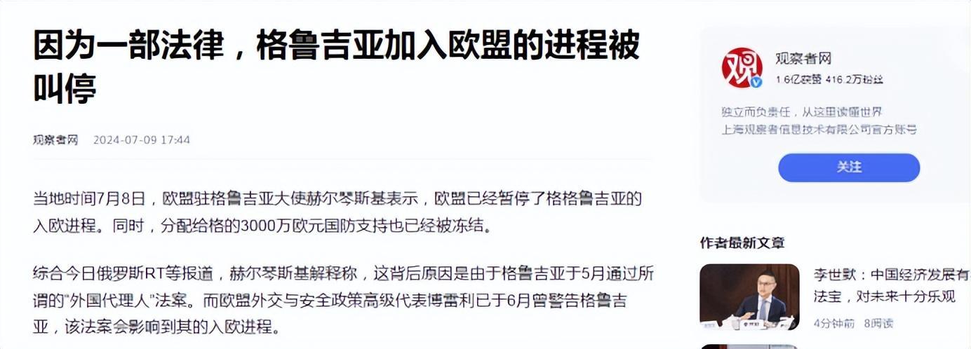 1.觀察者網 2024-07-09 《因爲一部法律,格魯吉亞加入歐盟的進程被叫停》