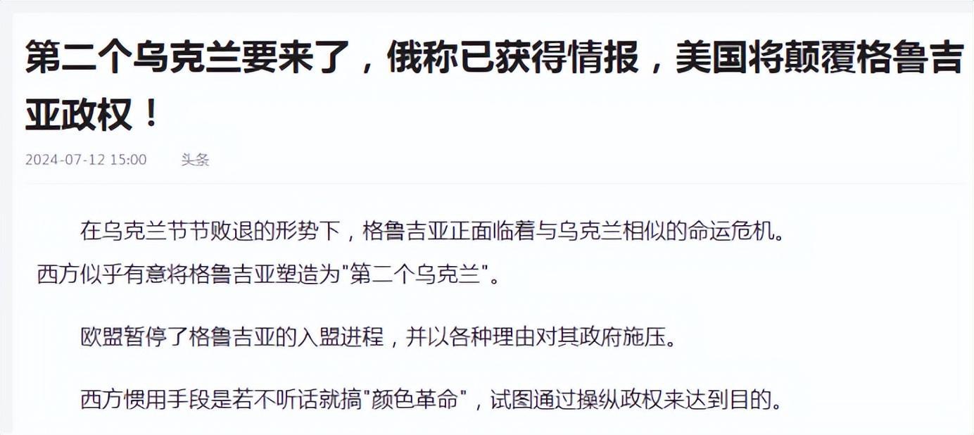 2.中華網 2024-07-12 《第二個烏克蘭要來了,俄稱已獲得情報,美國將顛覆格魯吉亞政權》