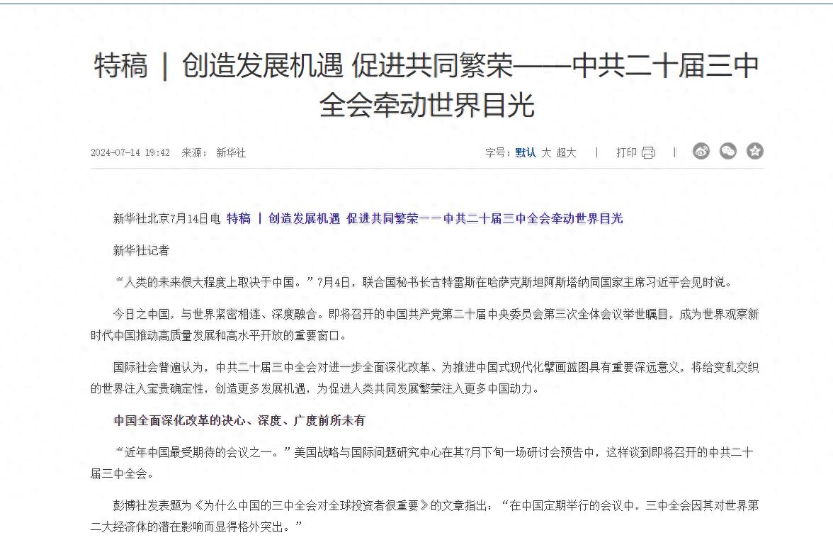 特稿 | 創造發展機遇 促進共同繁榮——中共二十屆三中全會牽動世界目光 來源: 新華社 2024-07-14