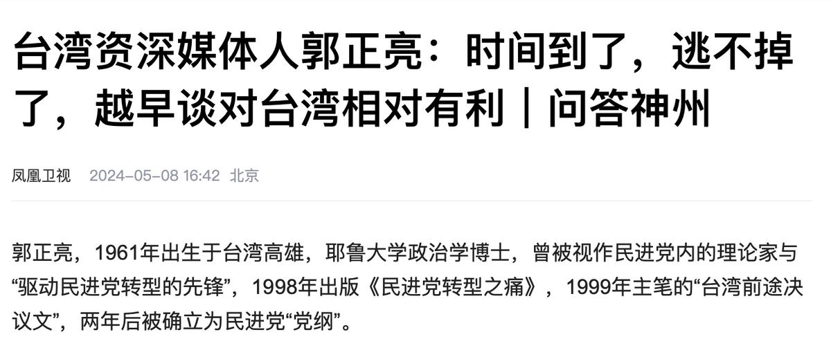 郭正亮作爲前民進黨立委,原來是“深綠”派,如今也已經意識到,“臺獨”本身就是一條絕路。