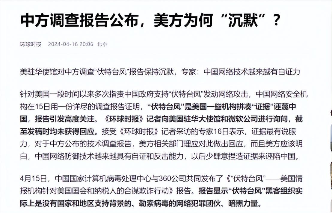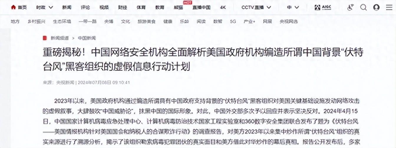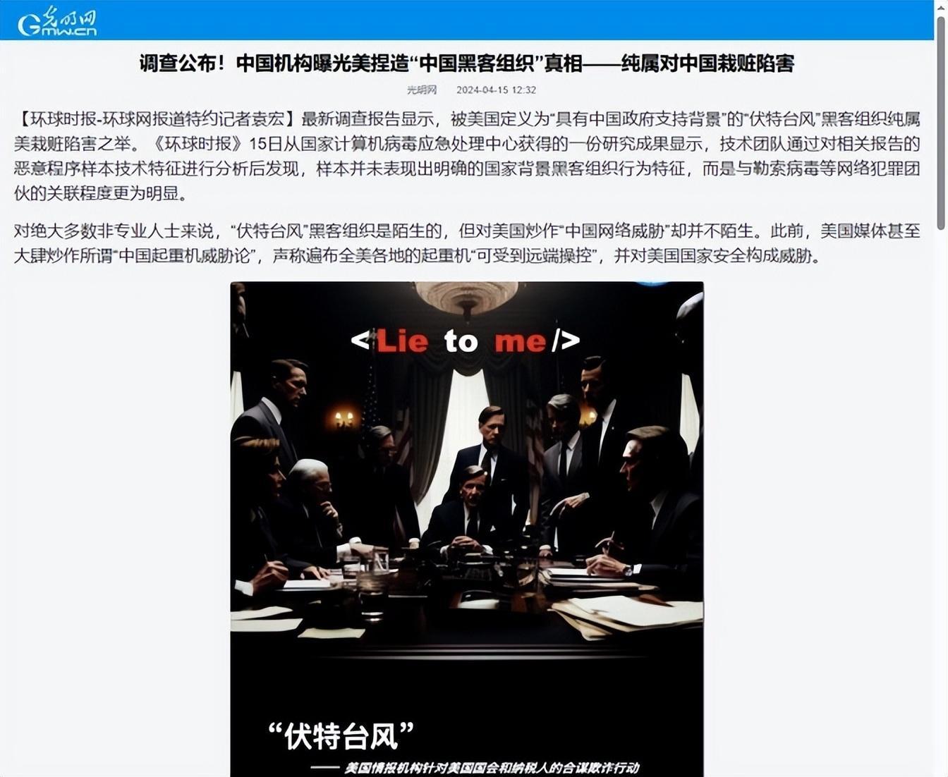 可是僅有官方回應顯然還不夠,美國看起來完全是有備而來,在我們國家回應之後,他們的情報機構又拋出來不少所謂的“研究報告”,裏面的內容一板一眼,全是這個“伏特颱風”組織與我國的聯繫,似乎還真像那麼回事。