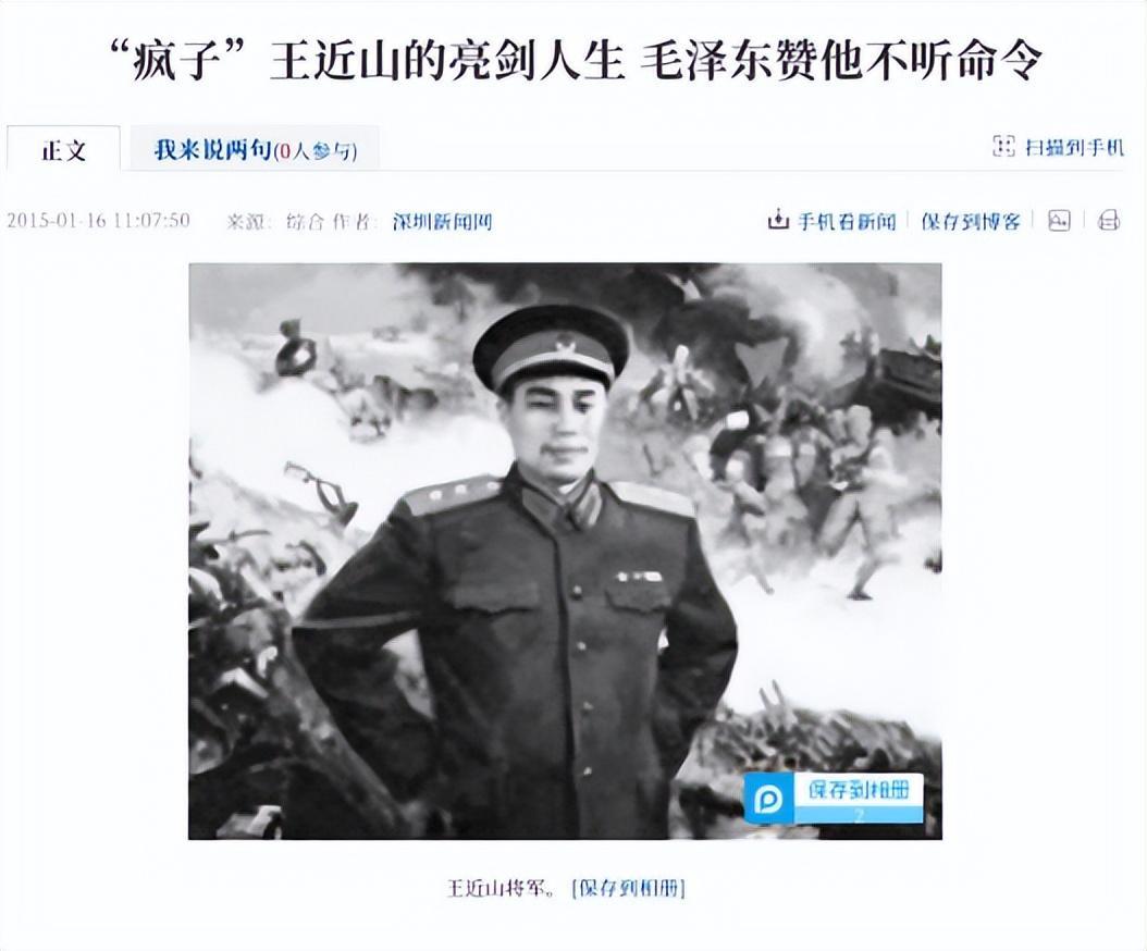“瘋子”王近山的亮劍人生 毛澤東贊他不聽命令.深圳新聞網.2015.1.16