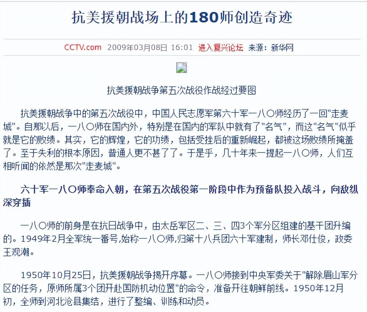 抗美援朝戰場上的180師創造奇蹟—央視網.2009.3.8.