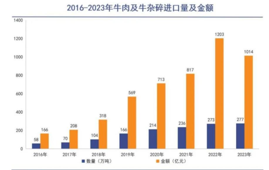 近些年來我國百姓的生活質量提高,昔日那些昂貴的進口牛排也上了普通的餐桌。我國是牛肉進口大國,在2023年進口牛肉273.74萬噸,增長了1.77%。其中巴西的牛肉成爲了我國進口牛肉的主力來源之一,佔比達到了43%。