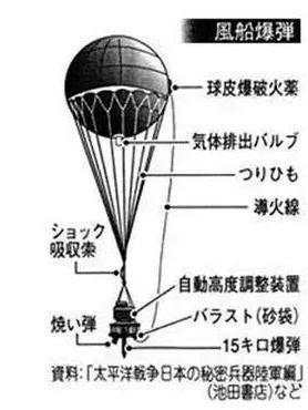 炸彈呢,就是普通的航空炸彈和迫擊炮炮彈,不過爲了控制飛行高度,日本人還在氣球上裝了些沙袋和一個自動定時的機械裝置,隨着時間自己丟掉配重,好控制氣球的飛行軌跡。
