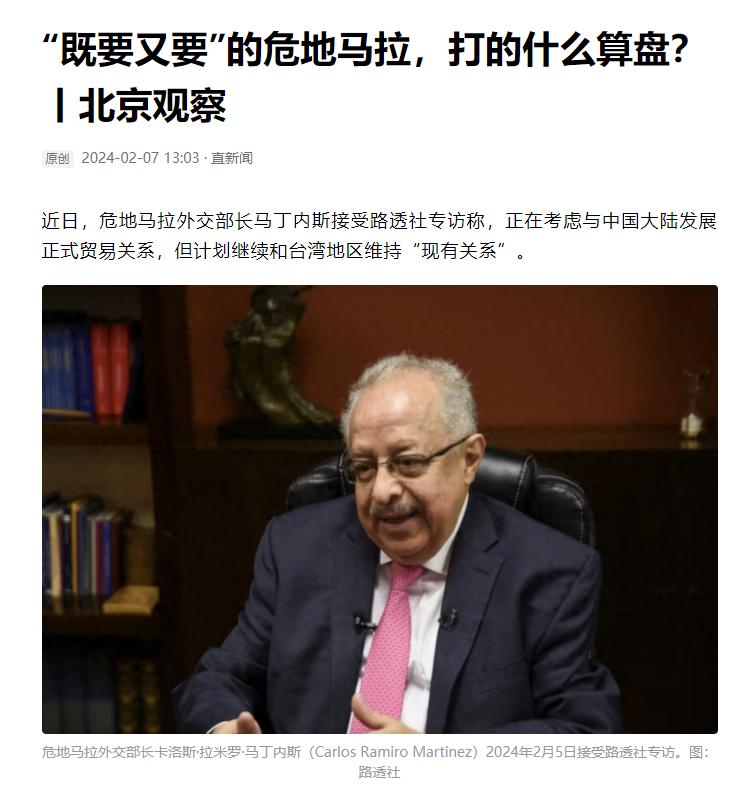 畢竟2024年5月,我國能因爲中國臺灣問題拒絕與危地馬拉進行相關的經濟合作,未來也不會和反華派合作。