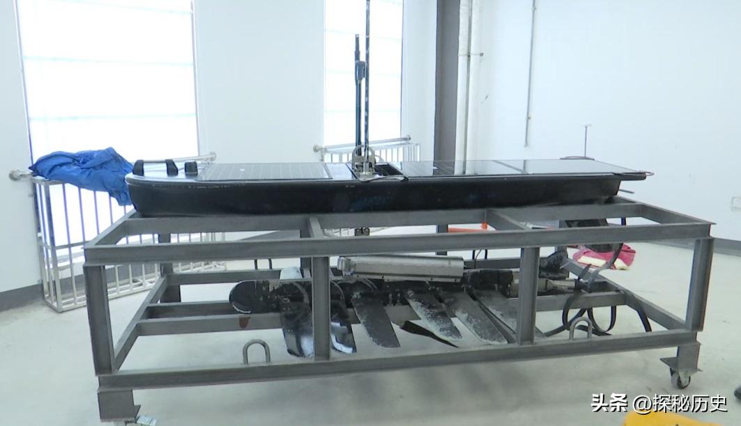 猛一看像是一隻船體模型,渾身黑漆漆的。仔細觀察之後發現,上面帶的裝備可不少,又是翅膀一樣的裝置又是太陽能板;這傢伙還能“遊”的,有動力裝置。