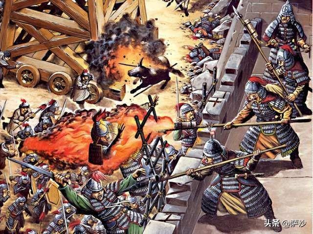 操縱攻城錘的金軍士兵身披重裝鎧甲,拿着金屬大盾牌,普通弓弩對他們威脅不大。