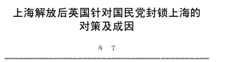 上海解放後英國針對國民黨封鎖上海的對策及成因 馬丁 史林