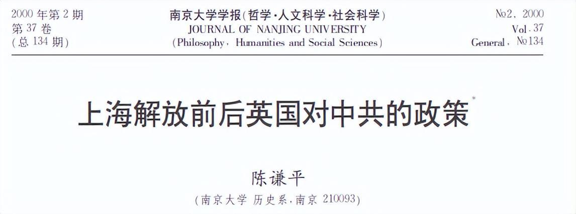 上海解放前後英國對中共的政策 陳謙平 南京大學學報