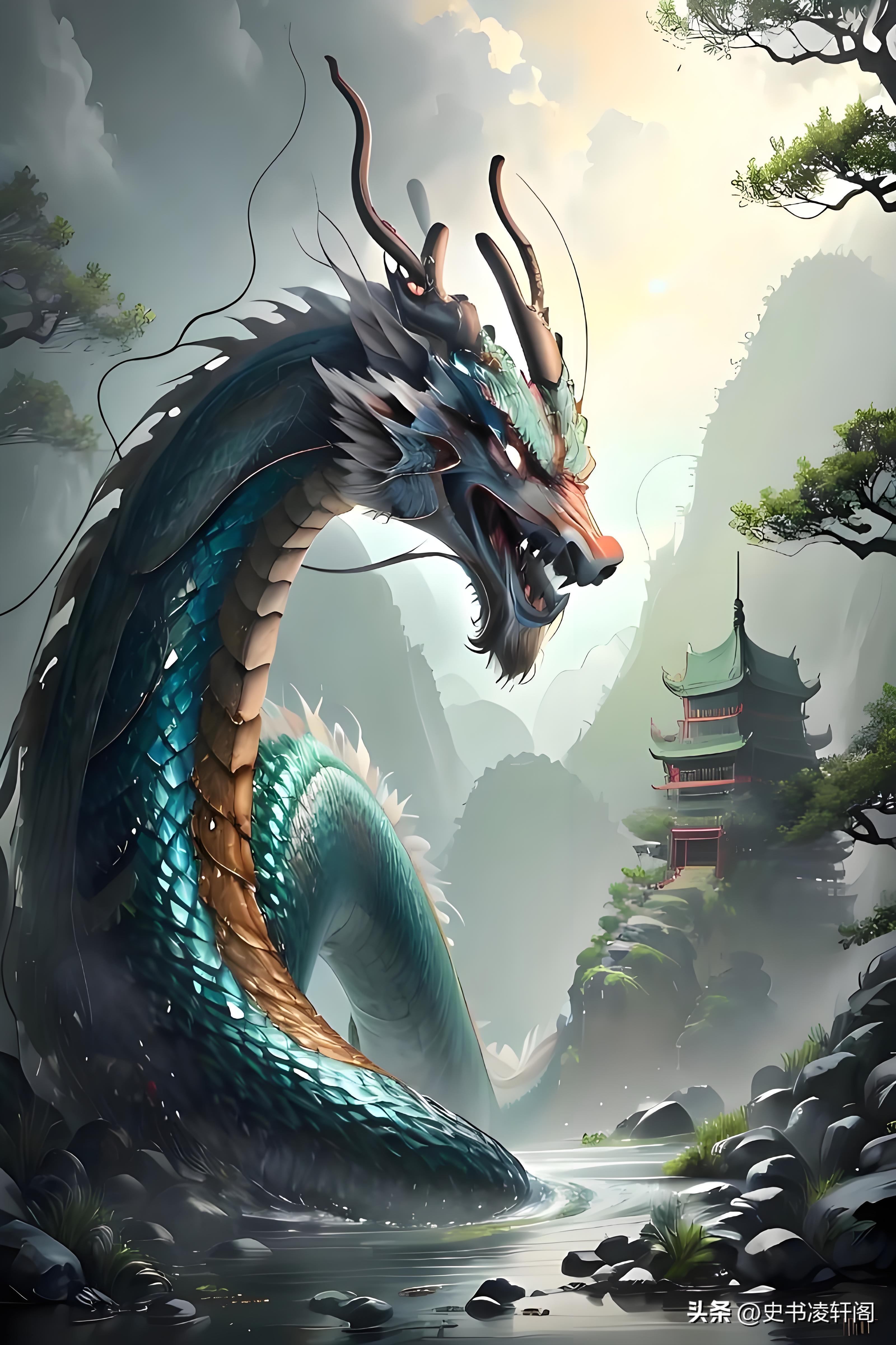 神話:燭龍的身形巨大,綿延千里,其身軀彷彿一座巍峨的山脈橫亙在天地之間。它那人身的面龐,五官清晰而威嚴,雙眸深邃如無盡的深淵,透露出神祕莫測的光芒,彷彿能夠洞悉世間萬物的生死輪迴。而它蛇身的部分,鱗片閃爍着幽冷的光芒,每一片都如同精美的藝術品,卻又蘊含着令人膽寒的力量。