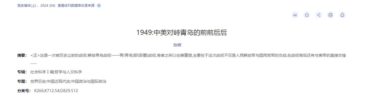 1949:中美對峙青島的前前後後 陳輝 黨史博採