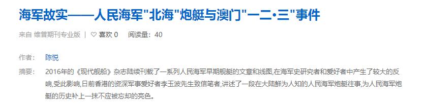 人民海軍“北海”炮艇與澳門“一二·三”事件 陳悅