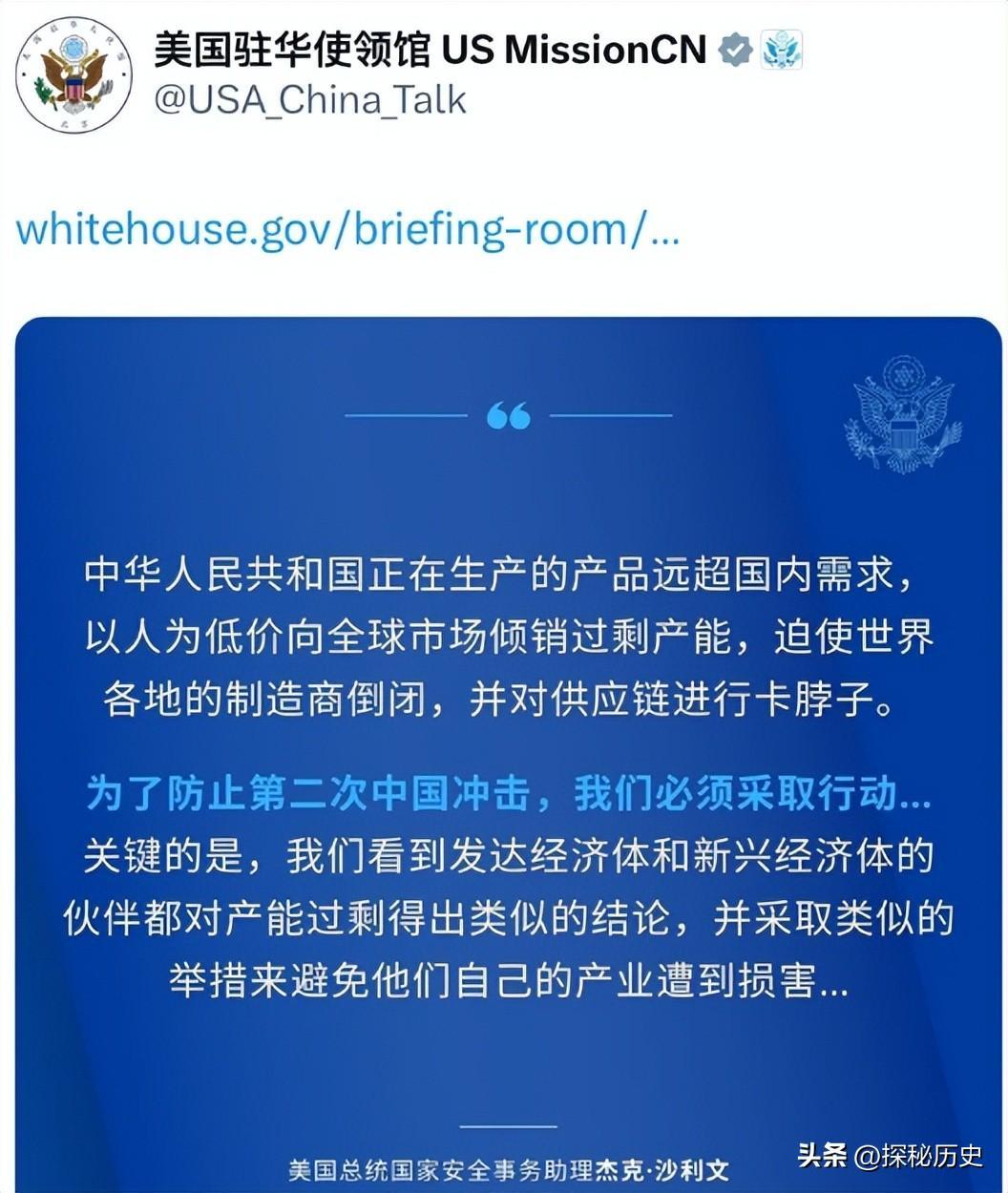 不過這些都不重要,還是回到沙利文的發言。不得不提的是,這不是他第一次提到“過剩”的話題。只不過這一次,他特別強調,所謂的“中國過剩產能”不僅僅是涉及到美國,還會波及全球,是個隱患。