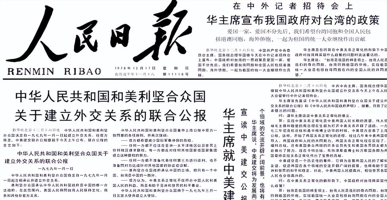 在這樣的情況下,北京時間1978年12月16日上午10時,中美同時發表《建交公報》,宣佈兩國將在1979年1月1日正式建交。
