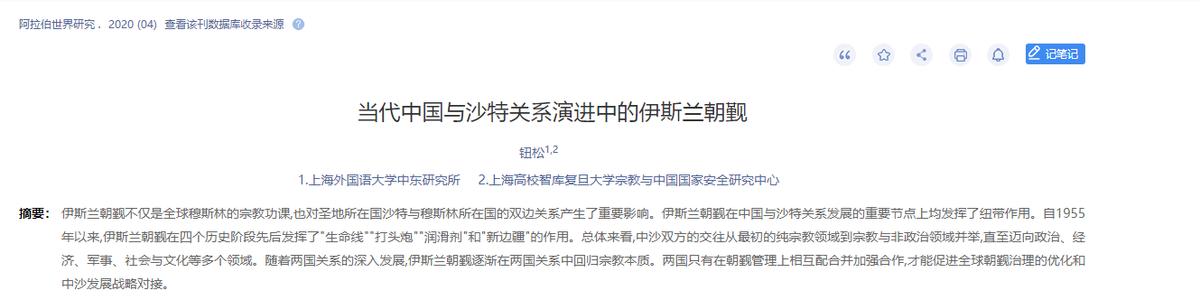 當代中國與沙特關係演進中的伊斯蘭朝覲 鈕松 阿拉伯世界研究
