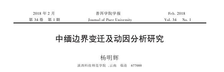 中緬邊界變遷及動因分析研究 楊明輝 普洱學院學報