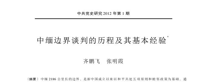 中緬邊界談判的歷程及其基本經驗 齊鵬飛、張明霞 中共黨史研究