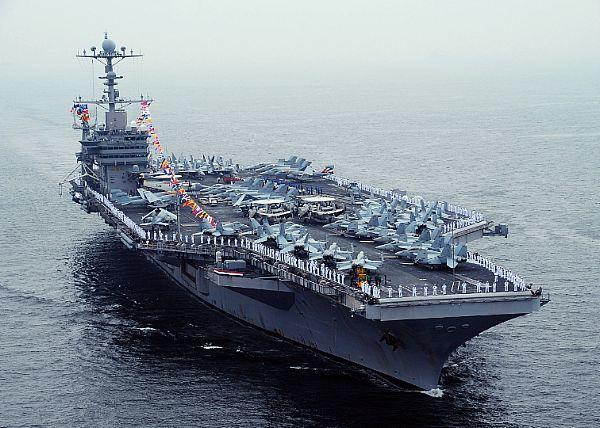 從海軍來看,面向中國方向的常備艦隊主要是美國第七艦隊,該艦隊大概有50到60艘戰艦,350架戰機,滿編狀態大約有3.8萬海兵以及2.2萬海軍陸戰隊。其主力是以“華盛頓”號核動力航母爲核心的航母戰鬥羣。第七艦隊擁有橫須賀、佐世保和關島3個軍港,母港爲日本的橫須賀。橫須賀距離臺灣島大約2081公里。