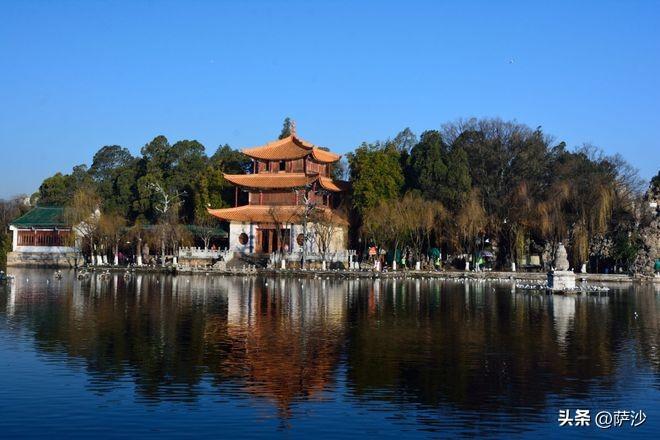 昆明大觀樓建立於清朝康熙時期,然後經過道光時期的擴建纔有三層樓。昆明大觀樓在1883年被洪水沖毀後重建,距離今天有100多年的歷史。昆明大觀樓不太高,三層僅有十六七米,比岳陽樓矮了很多,卻算是值得玩一玩的文物古蹟。