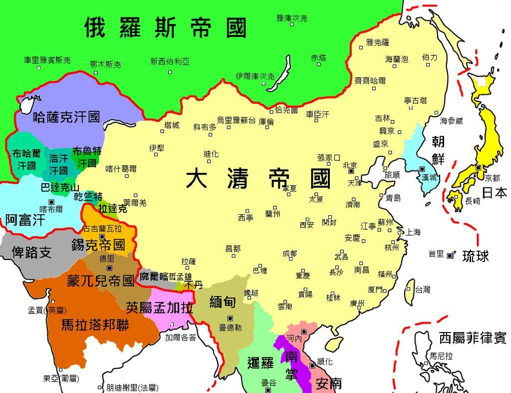 然而到了晚清時期,在中國國力衰弱,沙俄趁機南下,分別奪走了中國外東北和外西北,然後不斷向外蒙滲透。