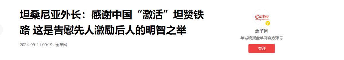 坦桑尼亞外長:感謝中國“激活”坦贊鐵路 這是告慰先人激勵後人的明智之舉 金羊網
