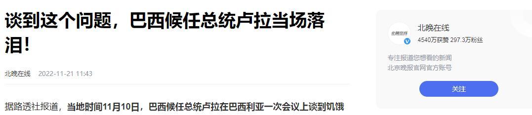 談到這個問題,巴西候任總統盧拉當場落淚! 北晚在線