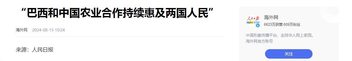 巴西和中國農業合作持續惠及兩國人民 海外網