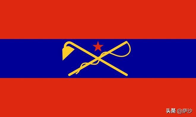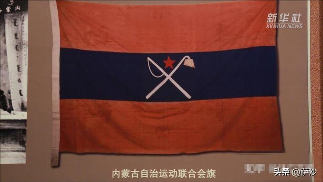 3.屬有政府旗幟。自治政府打出了自己的旗幟。政府旗設計爲紅、青、紅橫狀三條色,青色中央有鋤頭和套馬杆相交圖案,其上方有五角菱形紅星。鋤頭代表蒙古農民(也包括其他民族農民),套馬杆代表蒙古牧民,紅色象徵革命,青色象徵蒙古族。紅星代表內蒙古共產黨工作委員會,它的前身是內蒙古人民革命黨。