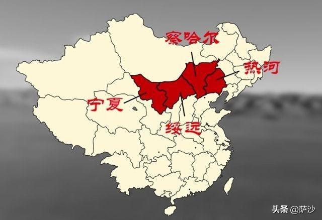 除了綏遠、察哈爾和熱河三省以外,當年寧夏省的面積比今天大得多,包括內蒙古西部地區。