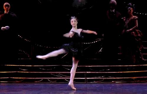 《天鵝湖》有個很牛逼的地方,就是在第三幕著名的黑天鵝奧吉莉婭獨舞變奏中,黑天鵝要一口氣做32個被稱作“揮鞭轉”的單足立地旋轉。