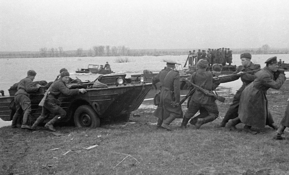 裝備到位後,蘇軍組建了11個獨立特別摩托化步兵營,編制爲616人,配備100輛福特GPA,外加各種輕機槍、高射機槍和迫擊炮。每個營都被賦予一個特殊任務:快速渡河,佔領橋頭堡。說白了,就是在敵人反應過來之前打個措手不及,讓後續大部隊順利過河。
