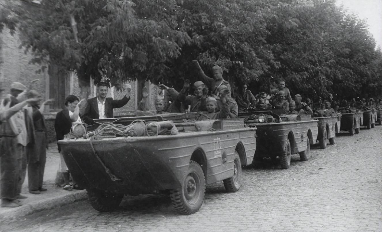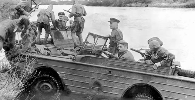 這時候,一支神祕部隊登上歷史舞臺——獨立特別摩托化步兵營,裝備美國福特GPA兩棲車,這些“水陸坦克”讓紅軍具備了閃電般的渡河能力。