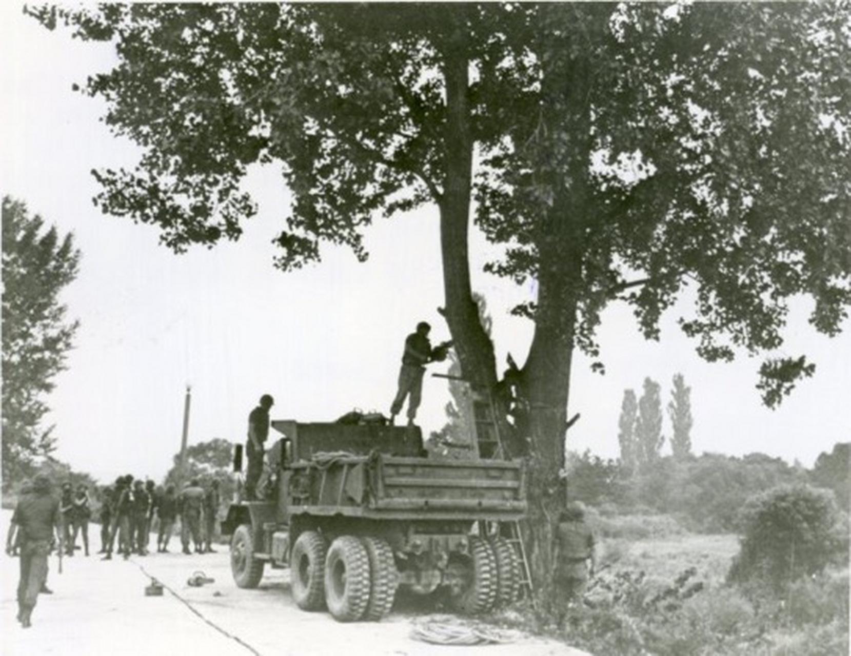 然而他們除了架設陣地,並將槍口瞄準正在作業的美軍工兵以外,沒有任何行爲,美國人在死亡威脅下敷衍了事地砍掉了白楊樹的樹冠,在離計劃時間還差三分鐘時就草草地結束了伐木作業,並留下了一段光禿禿的樹樁
