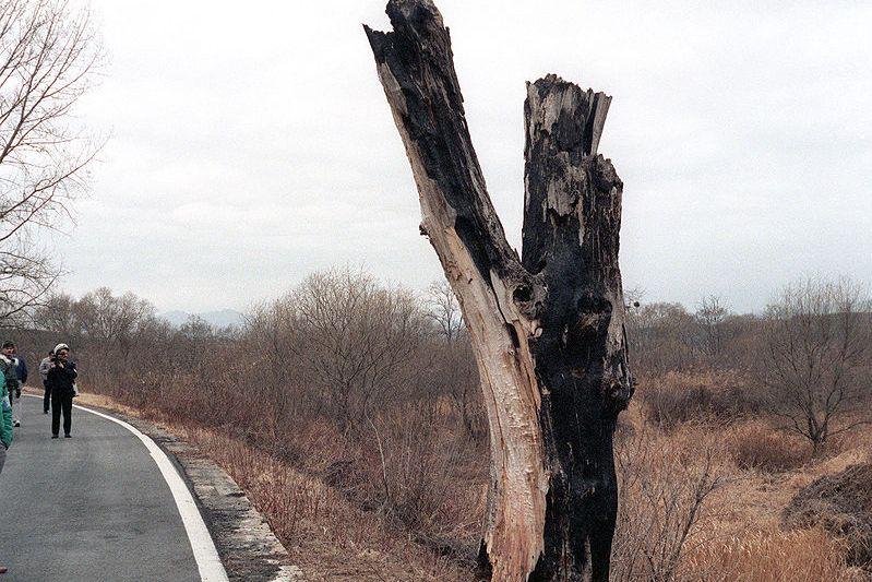 8月21號,美軍伐木隊一大早像鬼子進村一樣溜到白楊樹附近,然而警備區內並沒有任何一名朝鮮士兵出手阻攔美軍的伐木作業
