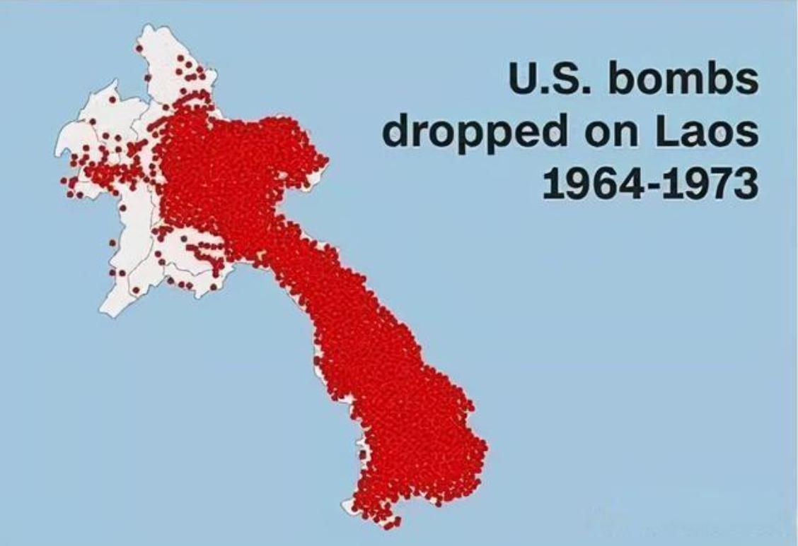 更缺德的是,在發現北越從胡志明小道向南越滲透後,美國對老撾進行了瘋狂地轟炸,向老撾投下了總計超過200萬噸當量的炸彈。